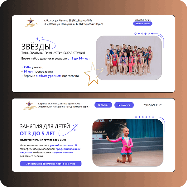 Разрабатываем 2 варианта дизайна главного экрана на основе пожеланий заказчика. Утверждаем понравившийся и создаем дизайн оставшихся блоков